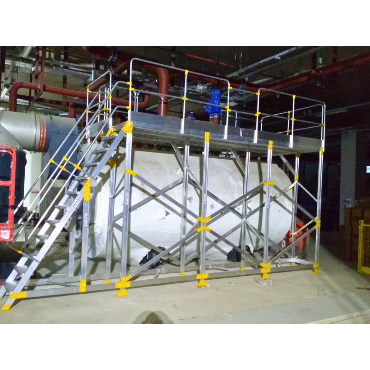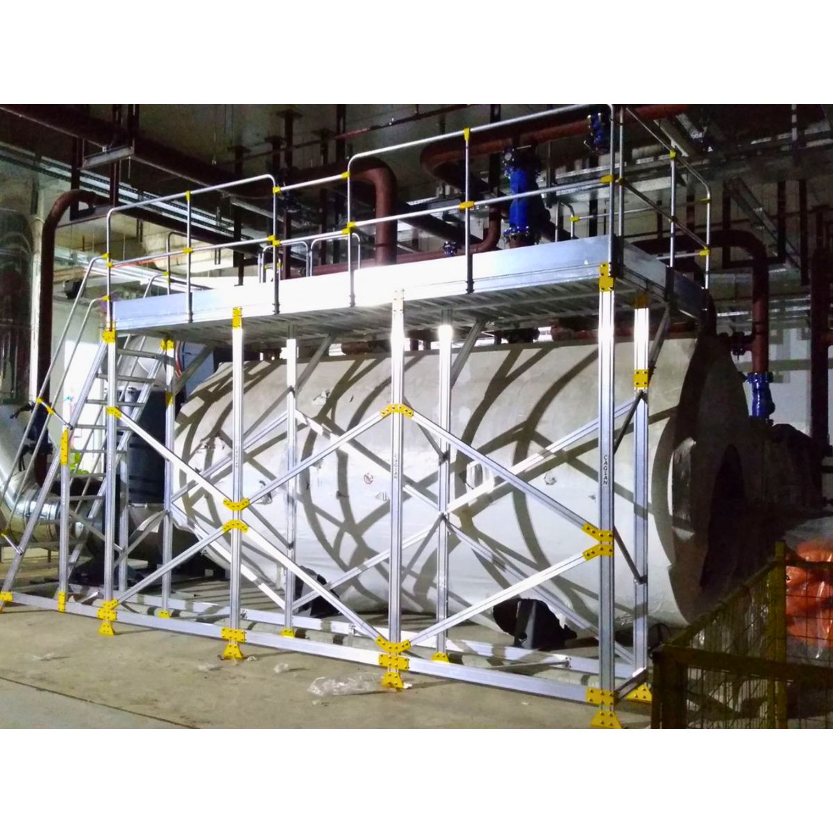 Denne type industriplatform til tank og silo er en mere omfattende løsning end simple platforme. Konstruktionen bygges omkring anlægget og giver en stabil arbejdsflade til løbende vedligeholdelse.