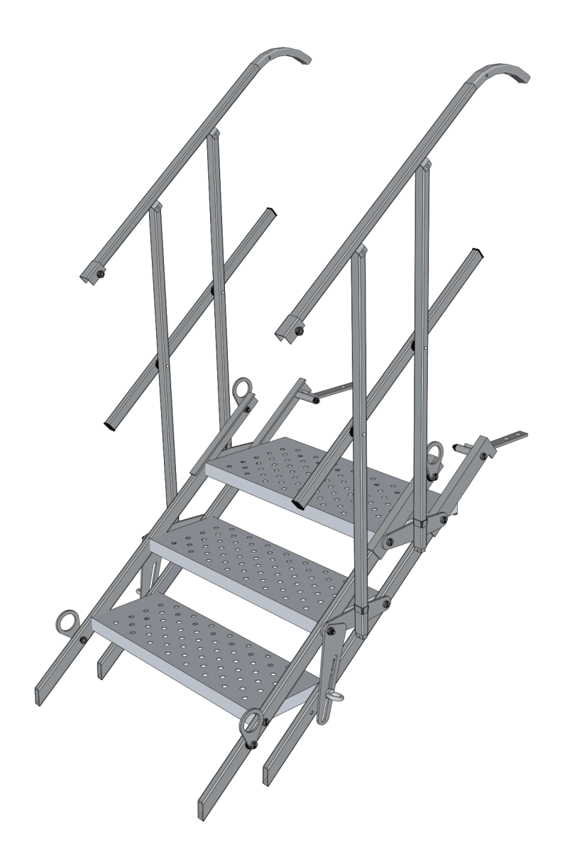 Trappen er sammenklappelig og kan stables for nemmere transport.