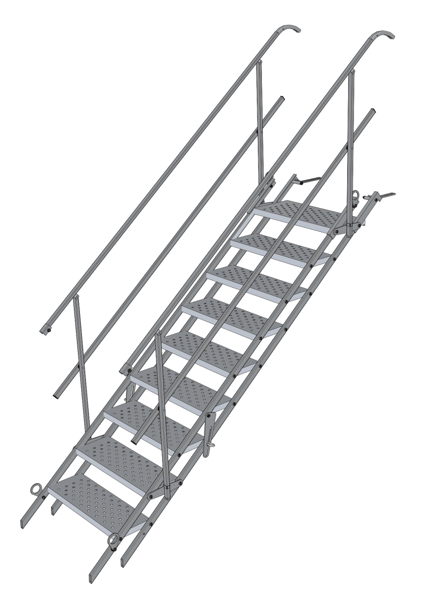 Leveres med dobbelt trapperækværk, som automatisk justerer hældningen