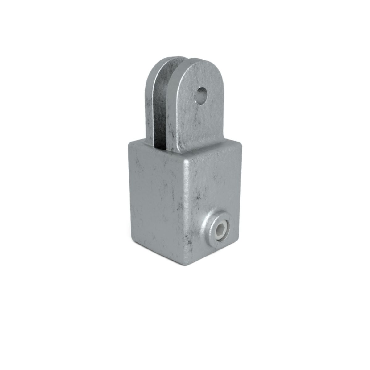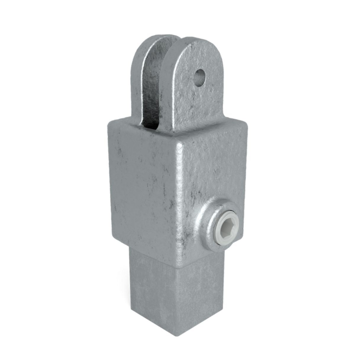 Fyrkantskoppling Vridbar Enkelhylsa är en delkomponent i ett svängbart kopplingssystem. Används tillsammans med motsvarande koppling för att skapa flexibla, justerbara rörförbindelser i lättare konstruktioner.
