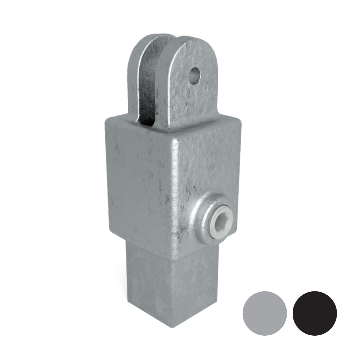 Kopplingen monteras direkt på fyrkantsröret och fixeras med insexskruv. Den finns i både 25 mm och 40 mm för att passa olika rörsystem, och erbjuds i både silver och svart finish för att matcha din konstruktion. Säljs styckvis för flexibel projektanpassning.