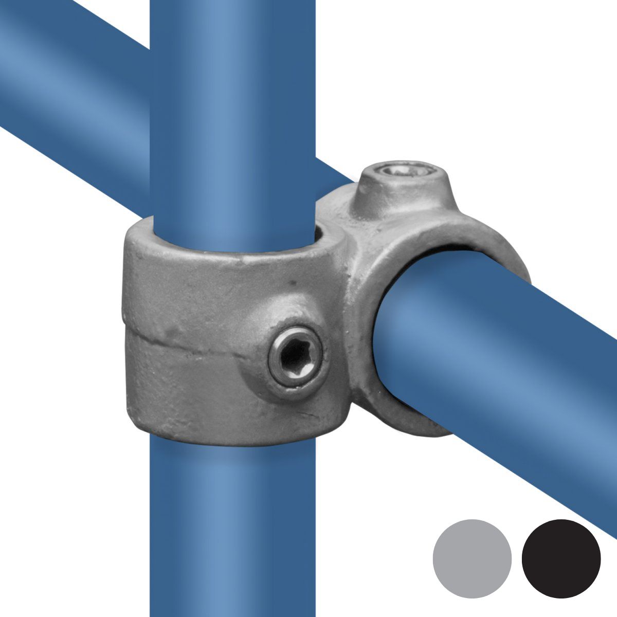 Rørkobling 90gr udenpåliggende er en smidig og robust kobling, der bruges, når to rør skal samles i en vinkel, hvor det tilsluttede rør monteres uden på det gennemgående rør. Perfekt til konstruktion af telte, garage, gelændere, indhegninger og skræddersyede rammer.
