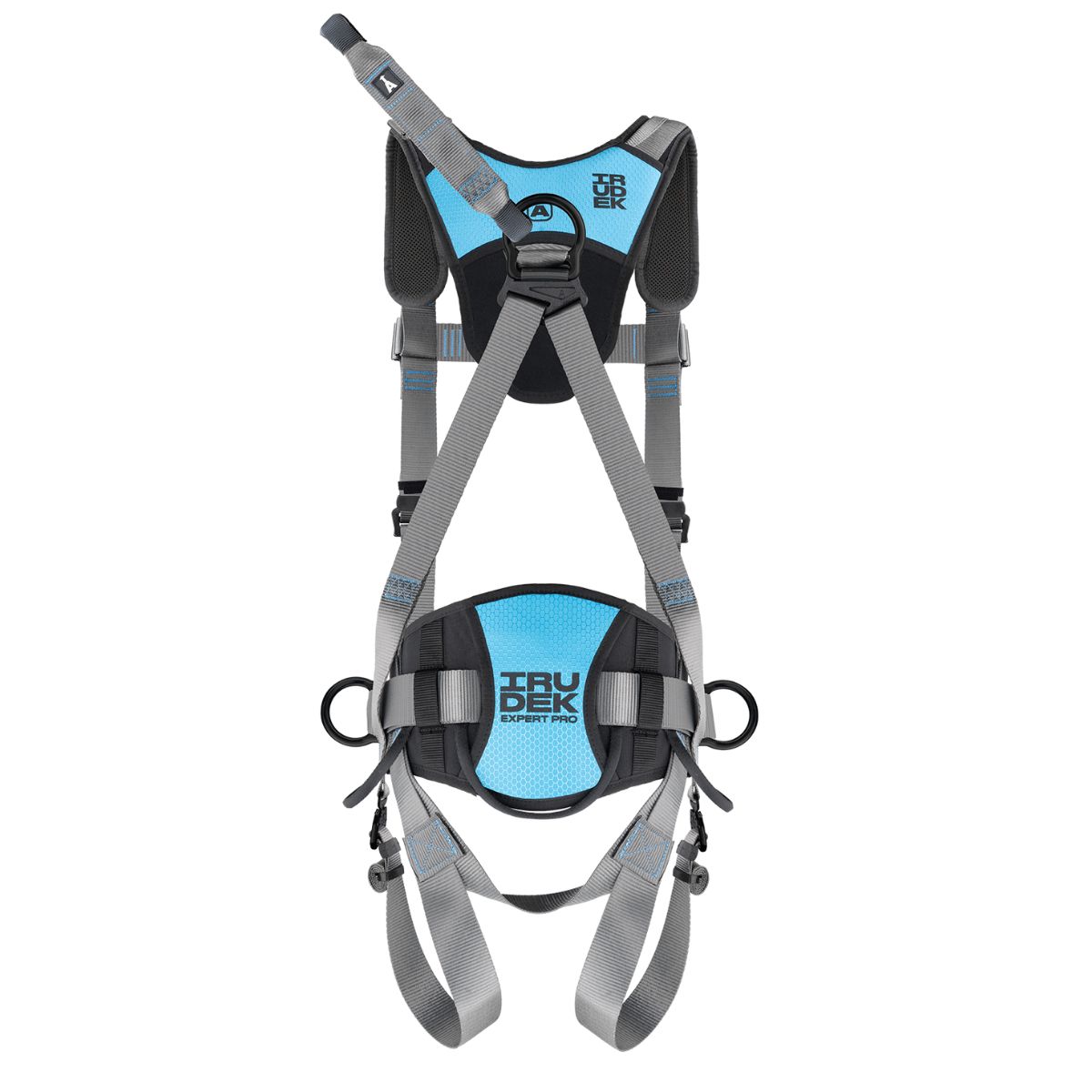 4-punktssele med rygforankring og forlængelsesbånd med velcro, brystforankring, brystrem samt justerbare skulder- og benremme. 180 graders polstret positioneringsbælte med beslag til Værktøj samt 2 solide D-ringe i smedet aluminium. Hurtigspænder gør det nemt at justere og lukke selen. Leveres i en nylonpose.