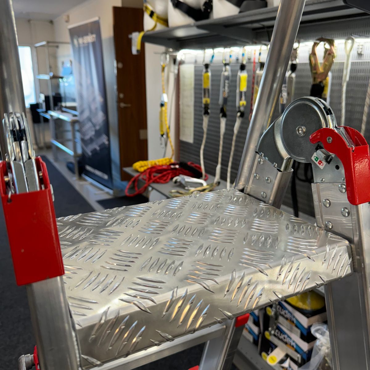 Ekstra platform med gelænder, der passer til vores sammenklappelige multistiger.