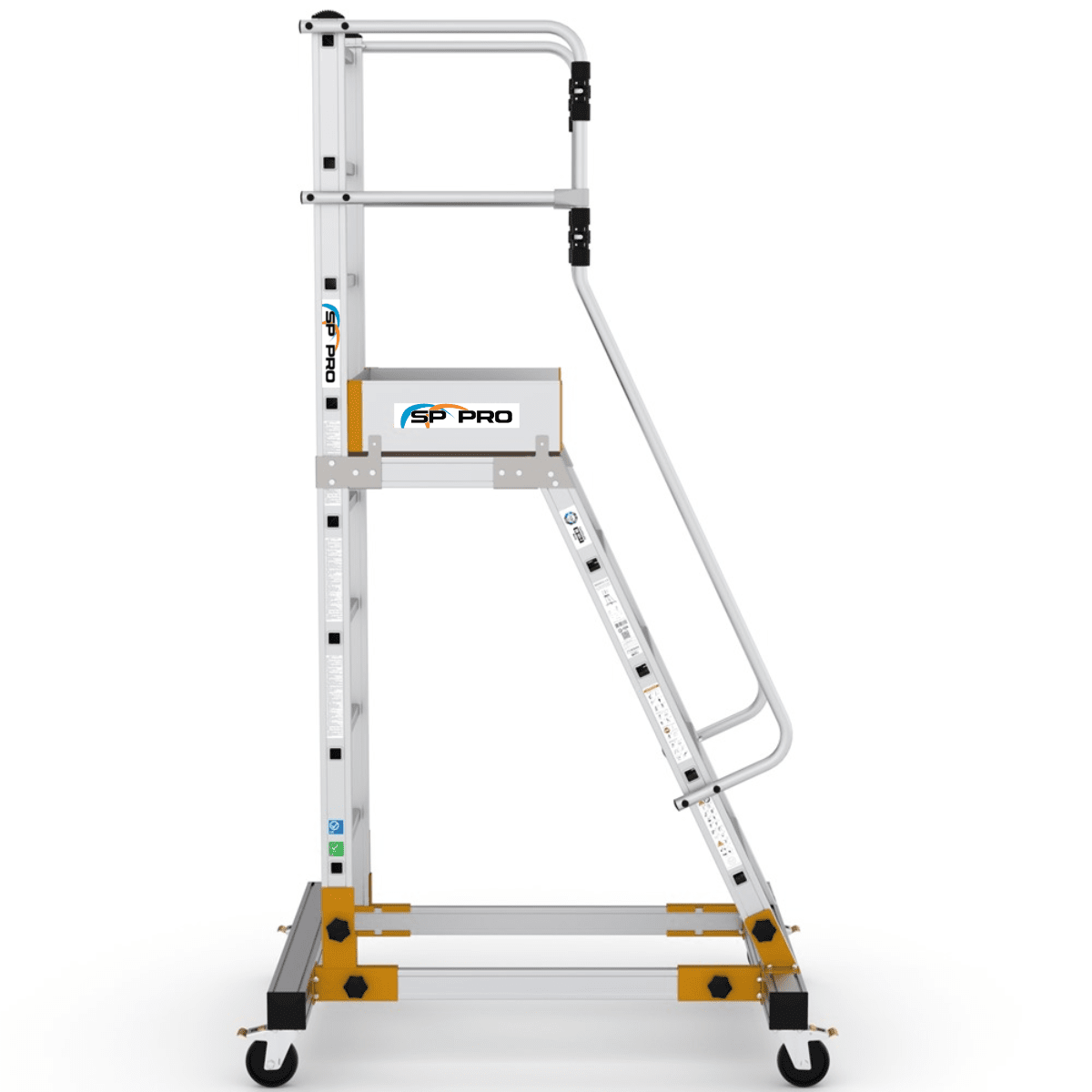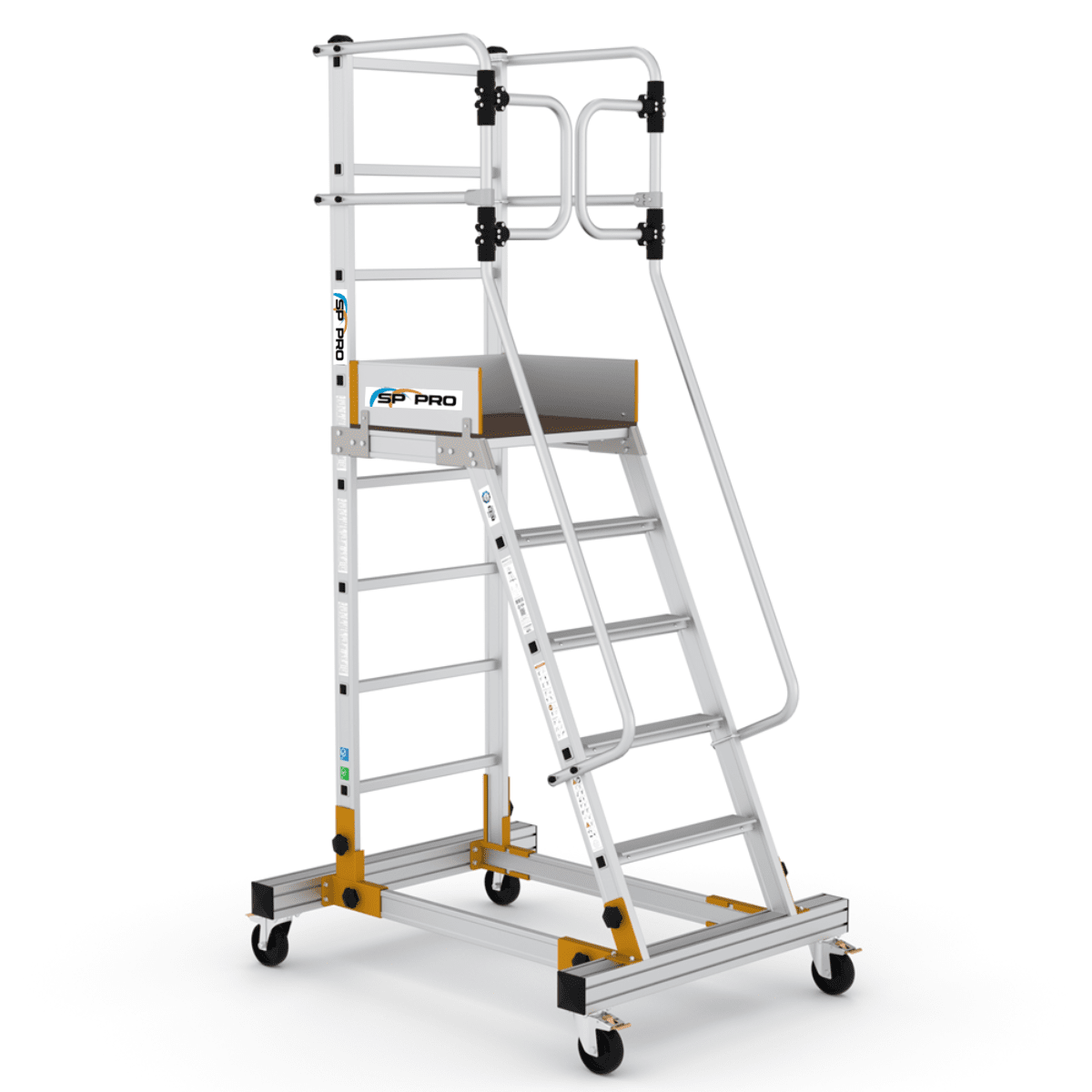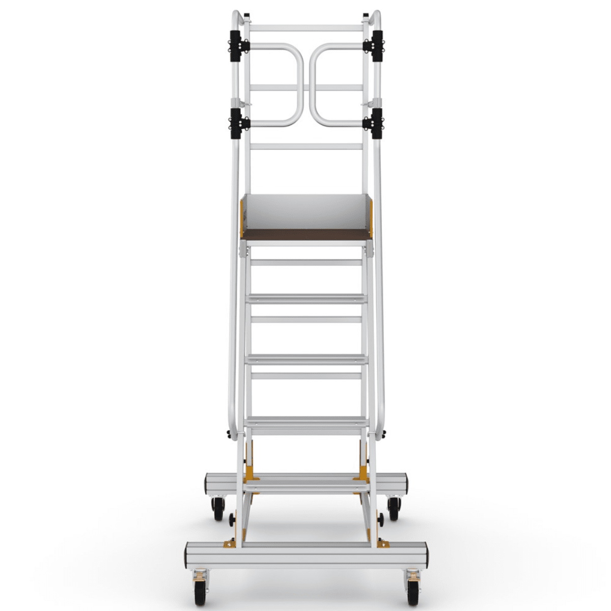 Den skridsikre platforme måler hele 60x50 cm, så du har masser af plads at arbejde på. Bæredelen er lavet med sigmaprofiler og er udstyret med drejelige hjul med lås, så du nemt kan flytte stigen eller platforme til det ønskede sted på ingen tid.