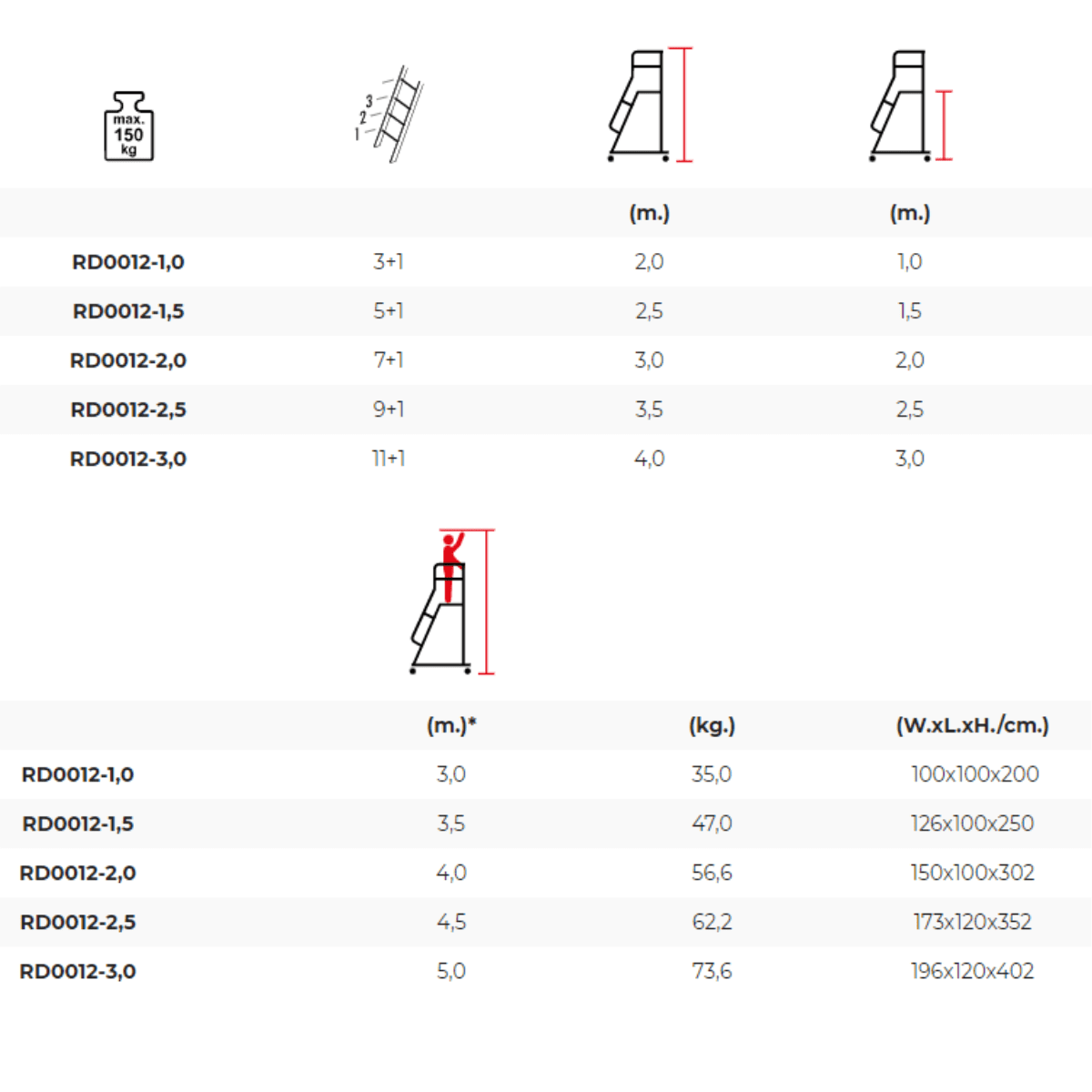 Dette alsidige produkt kan bruges til mange forskellige formål, som for eksempel at nå høje hylder på lageret, plukke og pakke varer eller som en generel arbejdsplatforme. Den skridsikre platforme giver ekstra sikkerhed og stabilitet, så du trygt kan bruge den til mange forskellige opgaver.