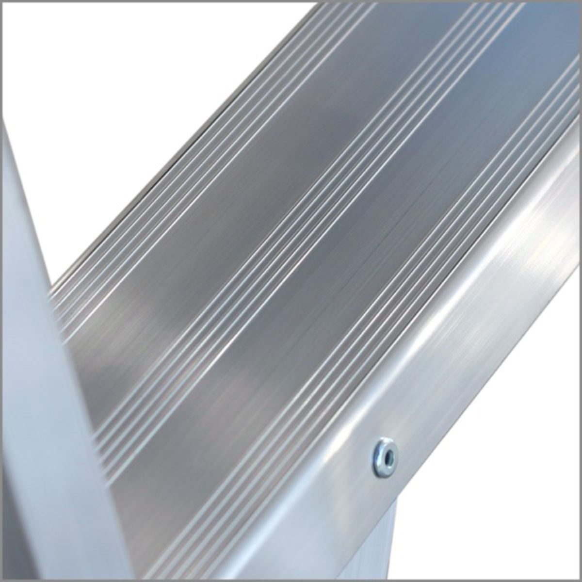 Med en platformshøjde på 0,75 m giver denne model den ekstra rækkevidde, der er nødvendig i butikker, boliger og værksteder. Den smalle platform giver en stabil arbejdsflade uden at optage unødvendig plads. Aluminiumsrammen kombinerer lav vægt med høj styrke.