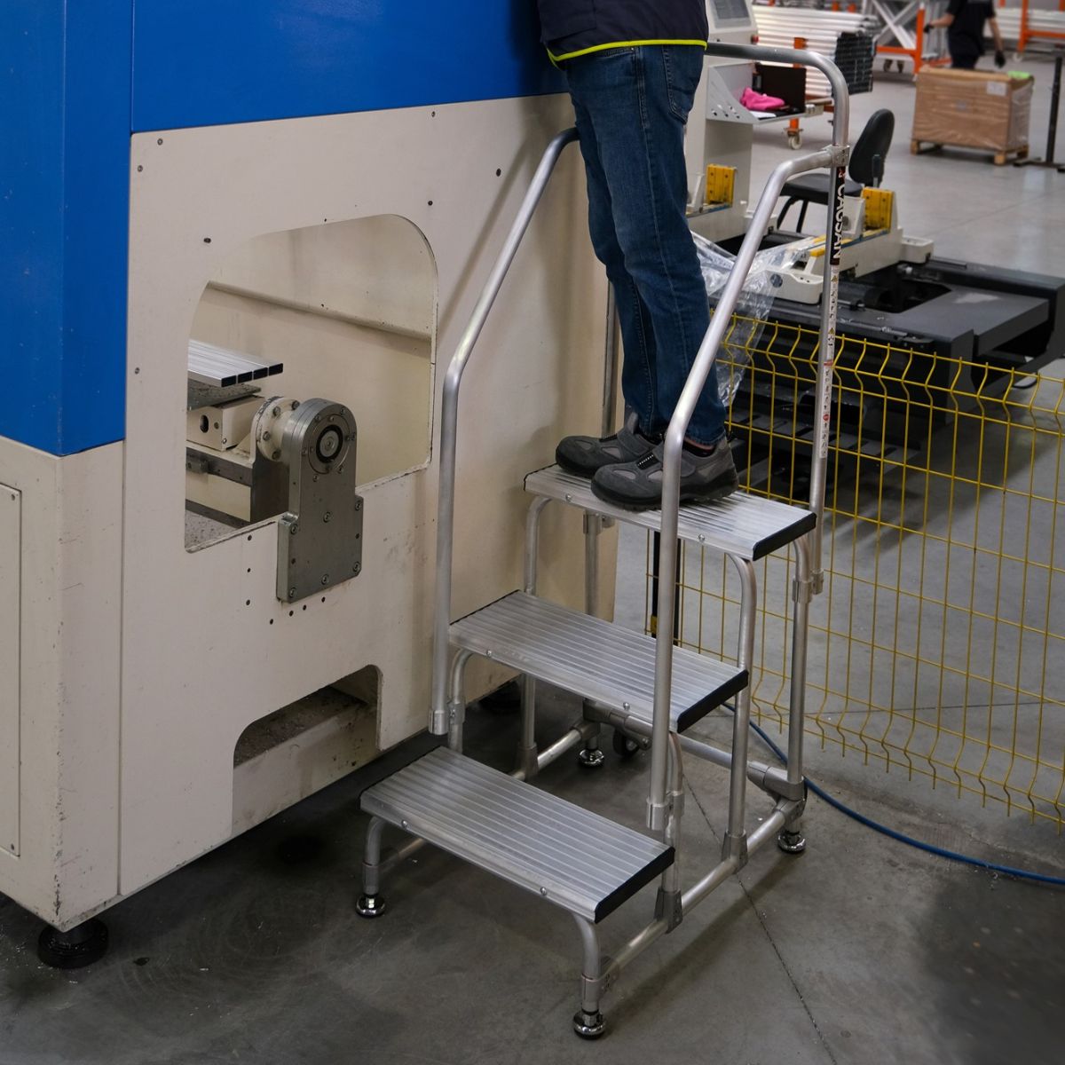 Med vores lette og brugervenlige arbejdstrappe kan du nemt nå kontrolpanelerne på dine maskiner. Brug den på lageret, til markeder, i reolområder eller andre passende steder.