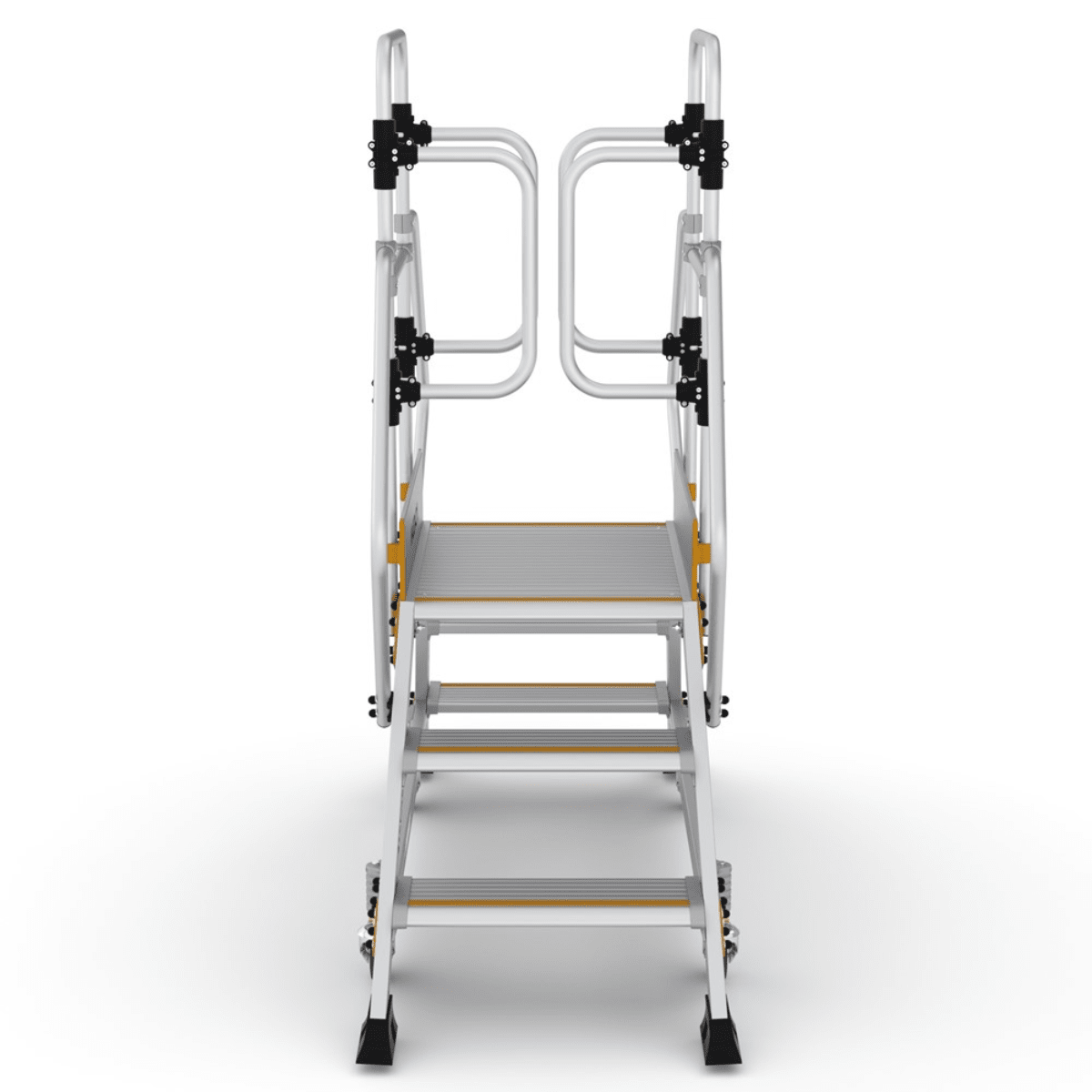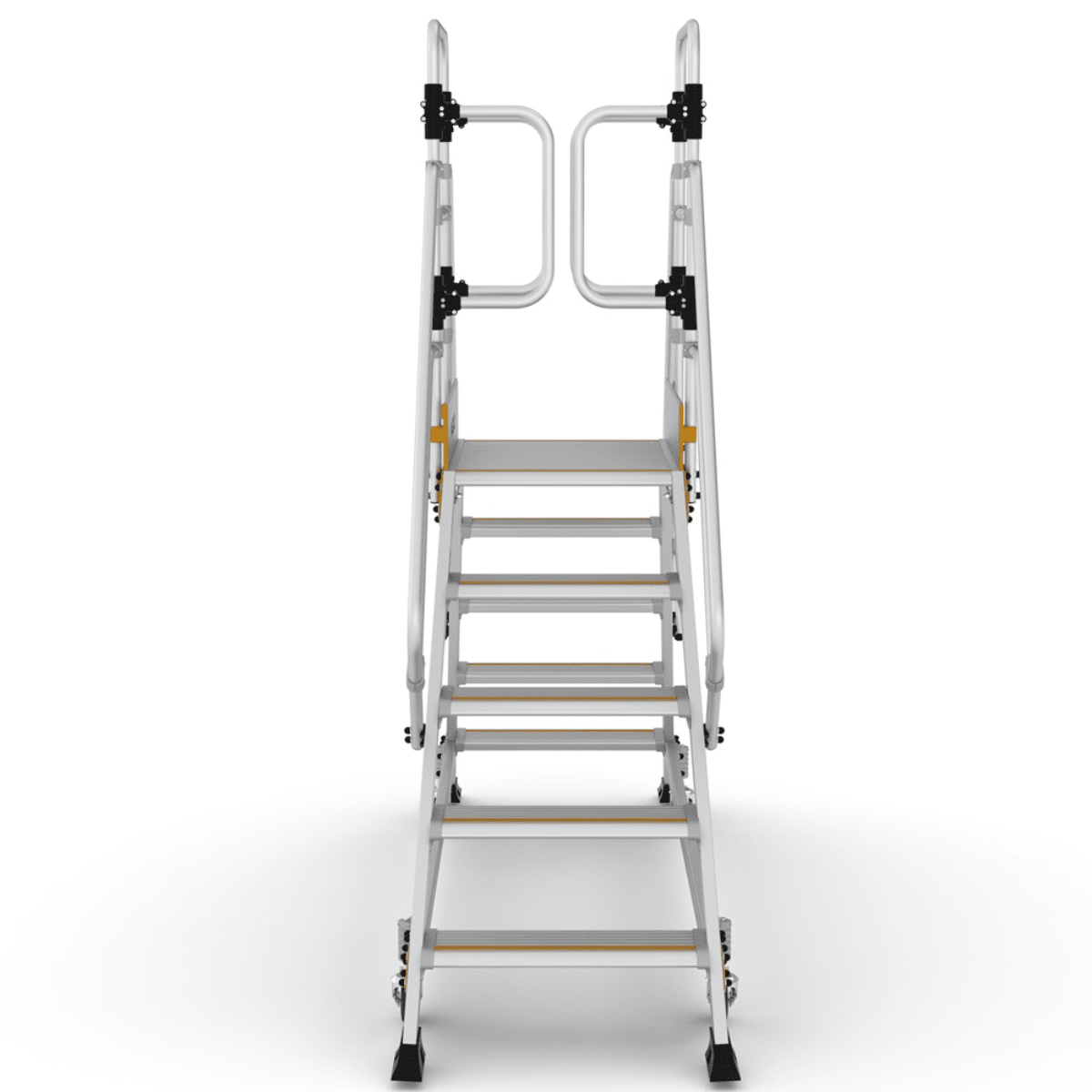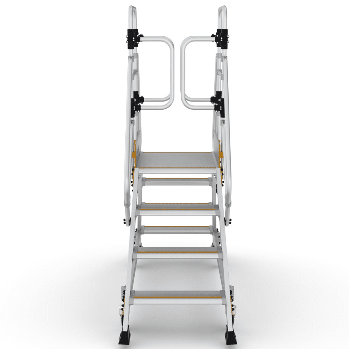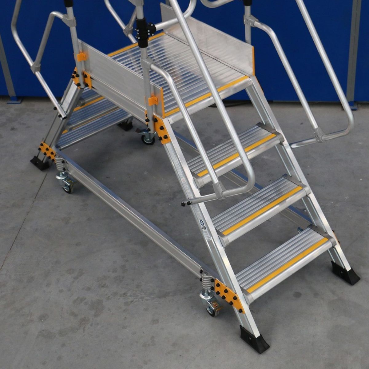 Denne platformstrappe er fremstillet i robust og holdbart aluminiumsmateriale for at sikre høj kvalitet og lang levetid, samtidig med at de er lette at flytte og håndtere.