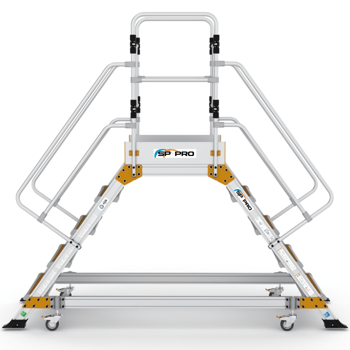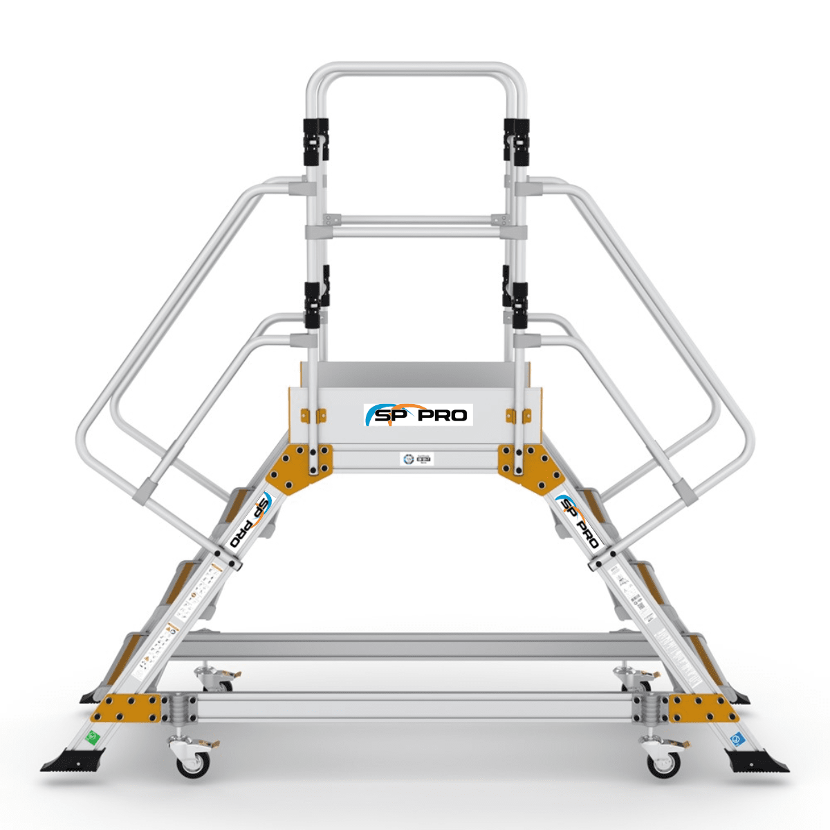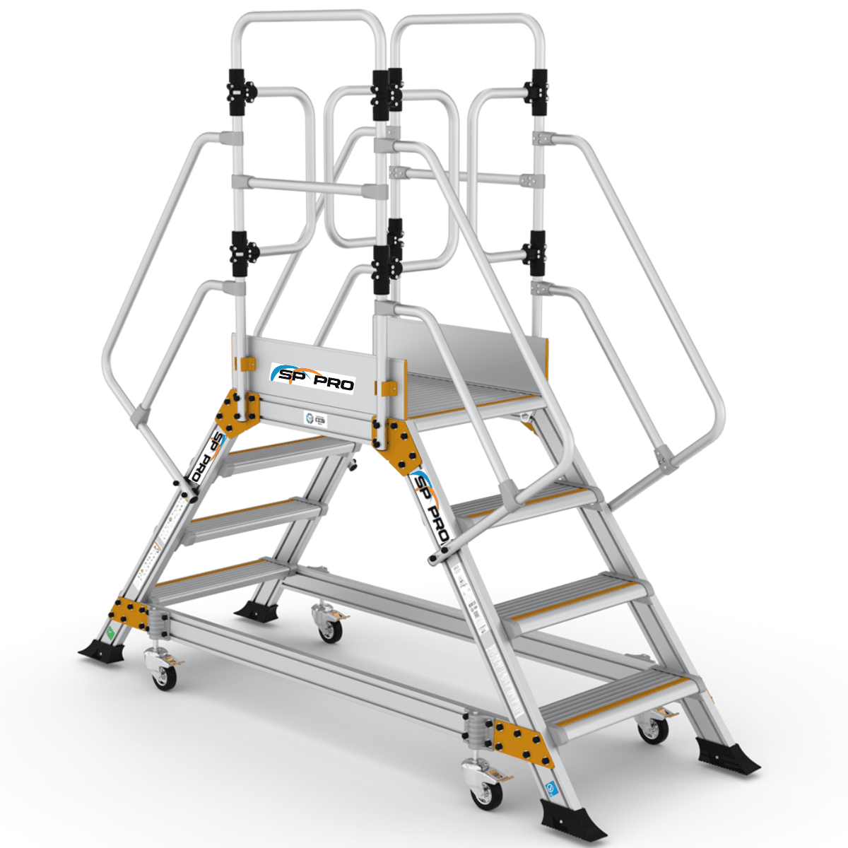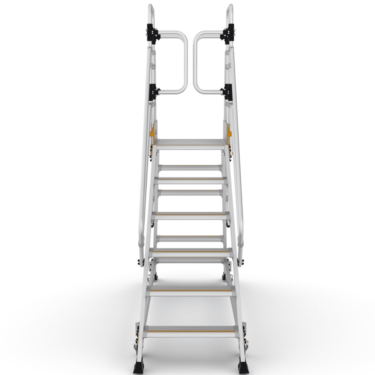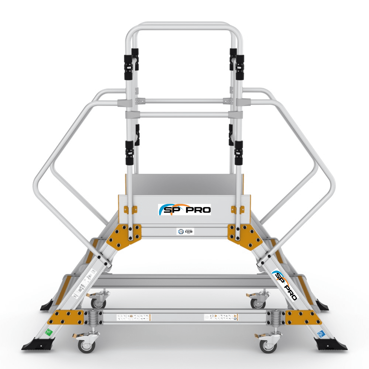 Denne platformstrappe er fremstillet i robust og holdbart aluminiumsmateriale for at sikre høj kvalitet og lang levetid, samtidig med at de er lette at flytte og håndtere.