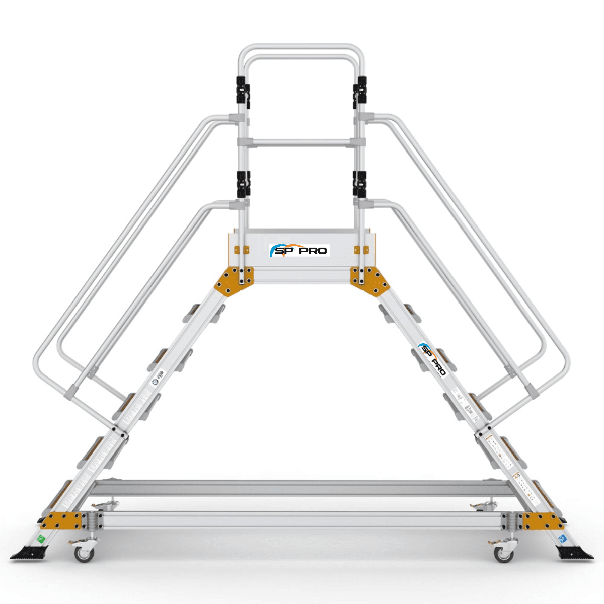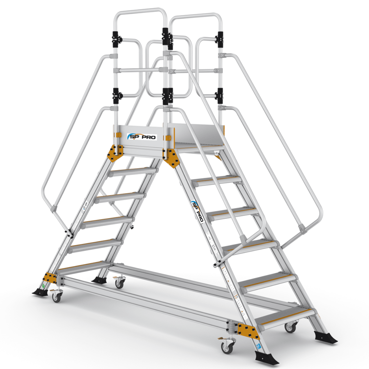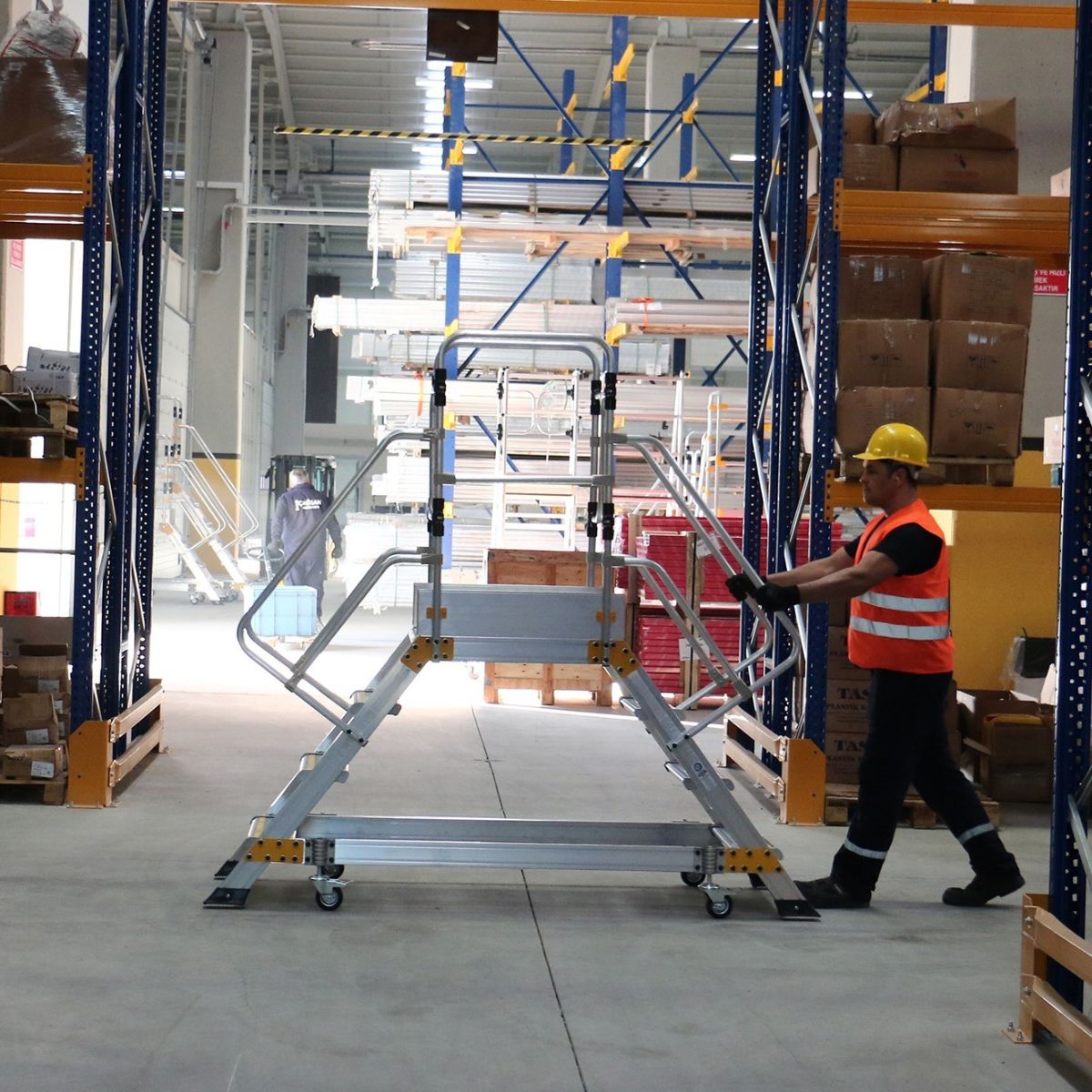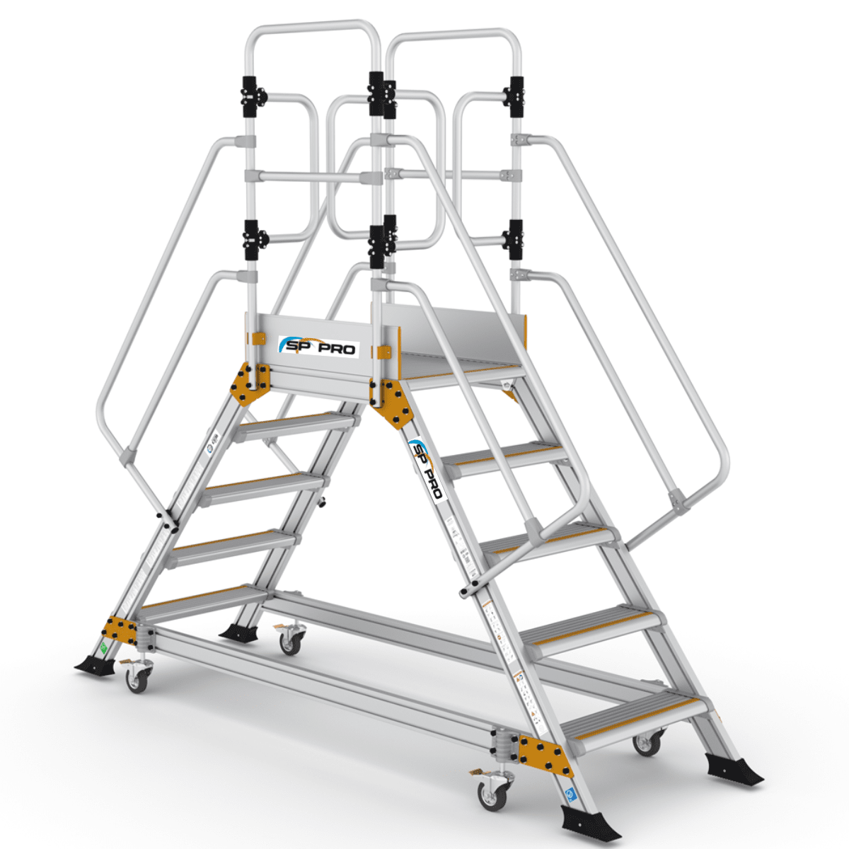 Denne platformstrappe er fremstillet i robust og holdbart aluminiumsmateriale for at sikre høj kvalitet og lang levetid, samtidig med at de er lette at flytte og håndtere.