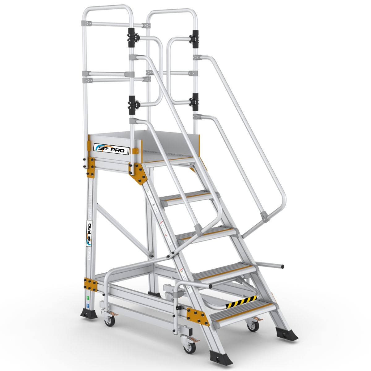 De høje gelændere rundt om arbejdsplatformen giver stabilitet, mens den selvlåsende fjederdør beskytter dig mod utilsigtede fald. Disse sikkerhedsfunktioner gør, at du kan arbejde fokuseret - også ved længerevarende opgaver - uden at gå på kompromis med trygheden.
