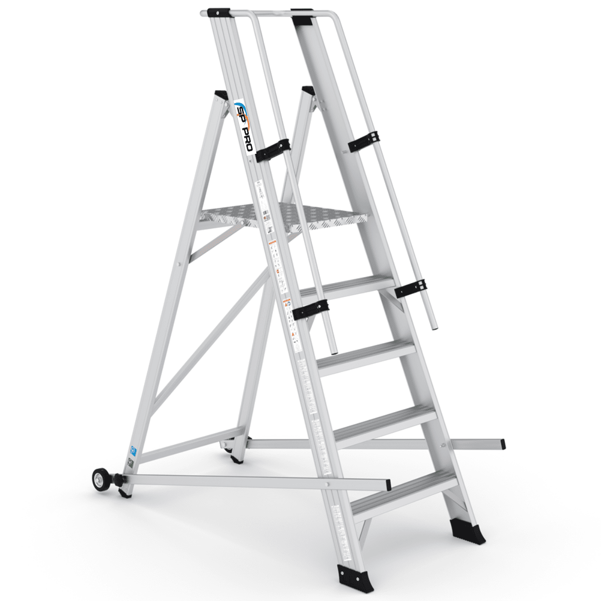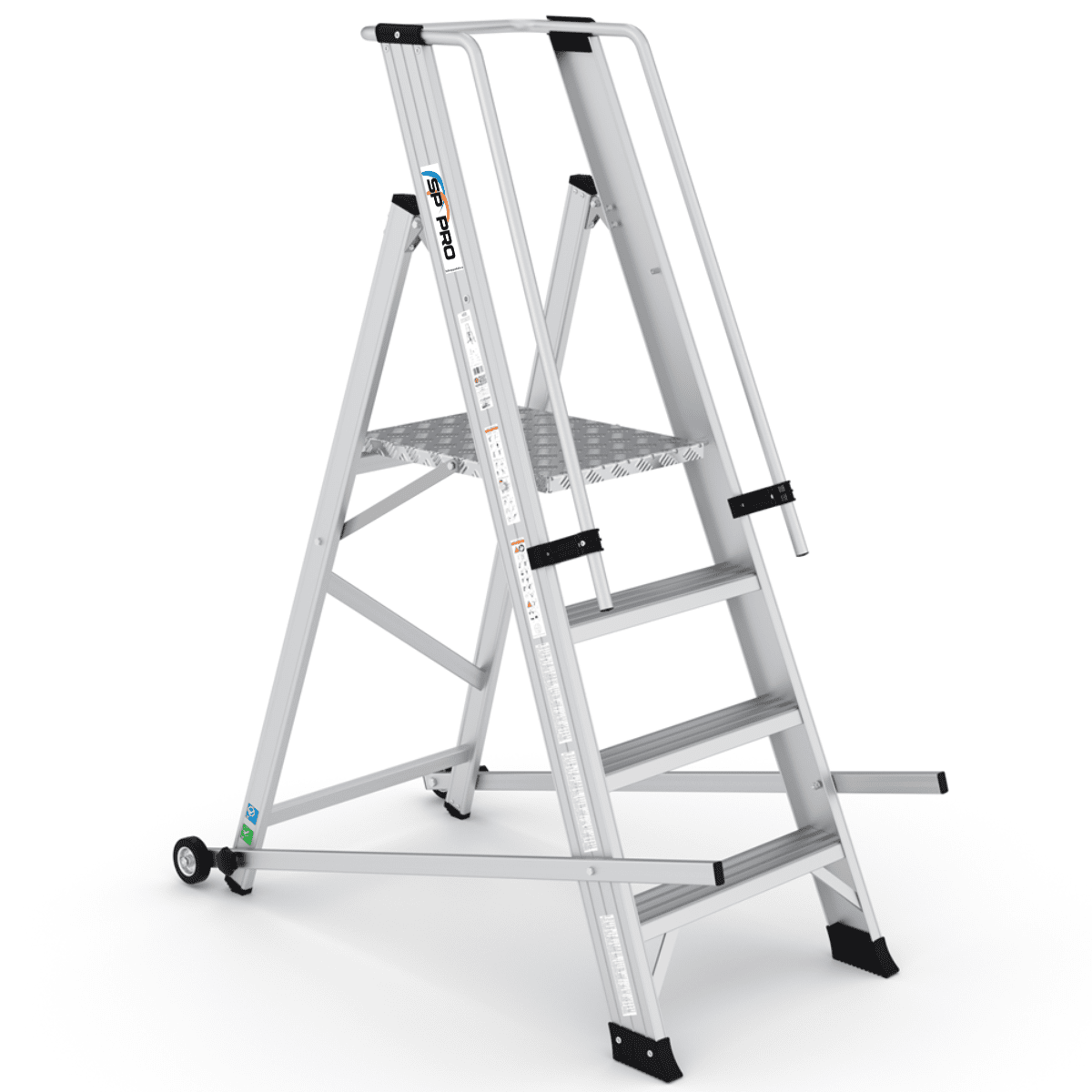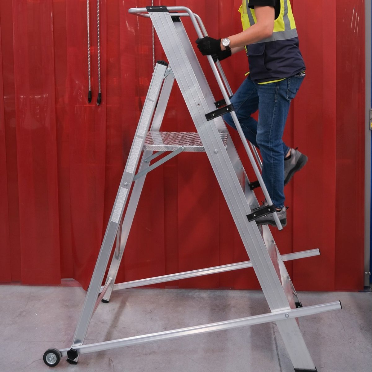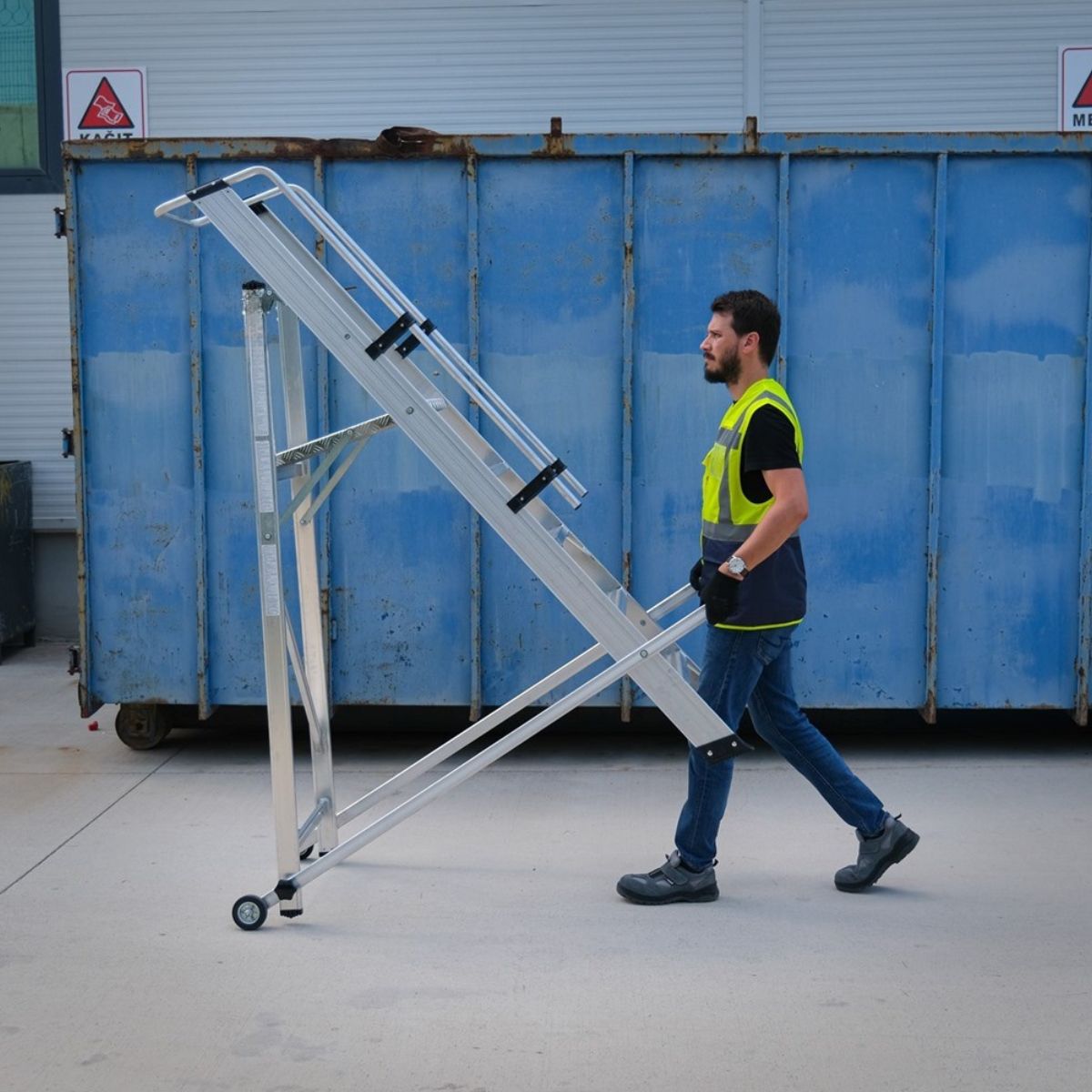 Denne trappestige er udstyret med hjul og fås i seks forskellige størrelser. Det er en utroligt praktisk og sikker løsning, når du skal arbejde i højden. Hver platform er fremstillet helt i aluminium med en skridsikker overflade på 42x53 cm, som giver ekstra stabilitet og et sikkert fodfæste. Med certificering efter EN 131 kan du være tryg ved, at dette valg lever op til de højeste sikkerhedsstandarder.