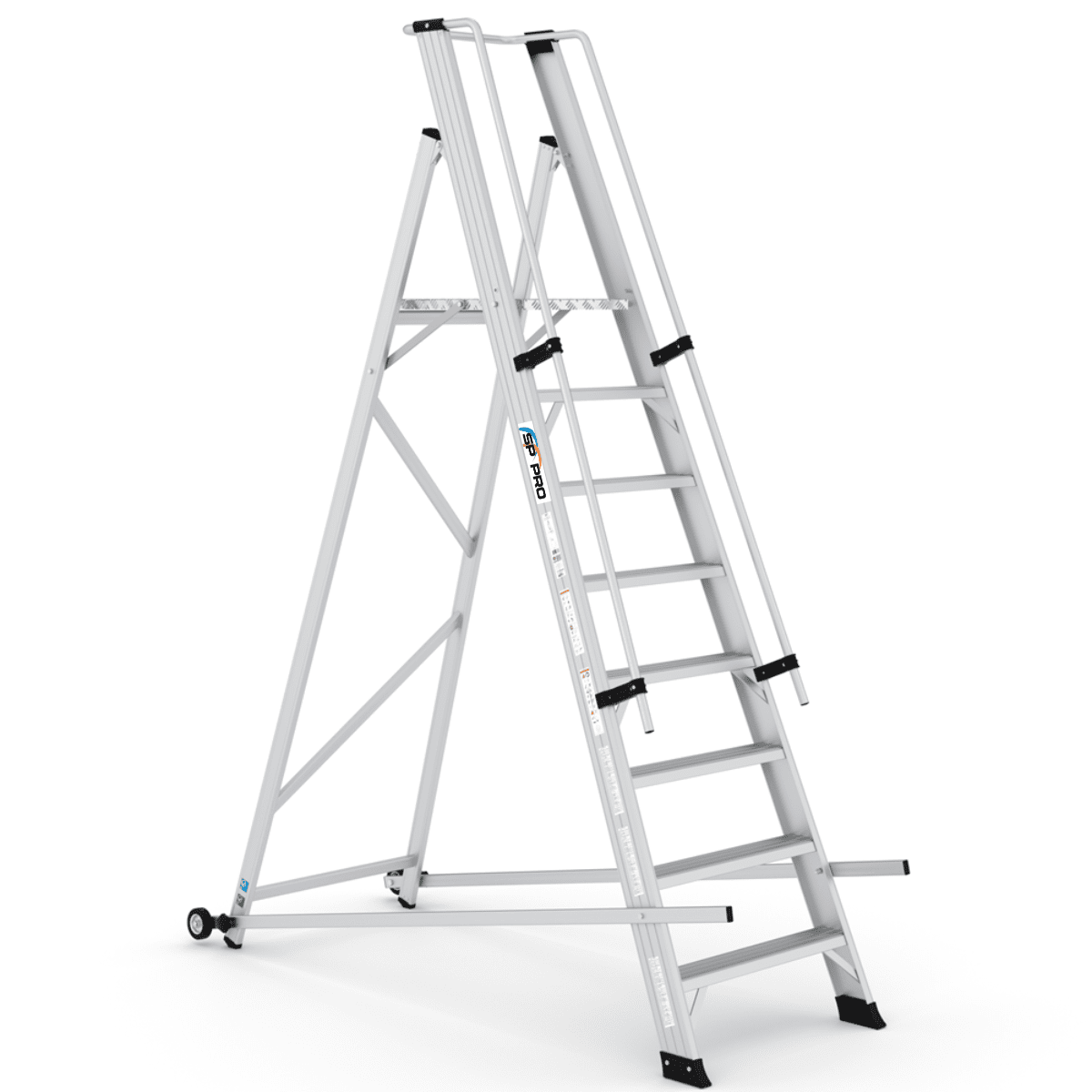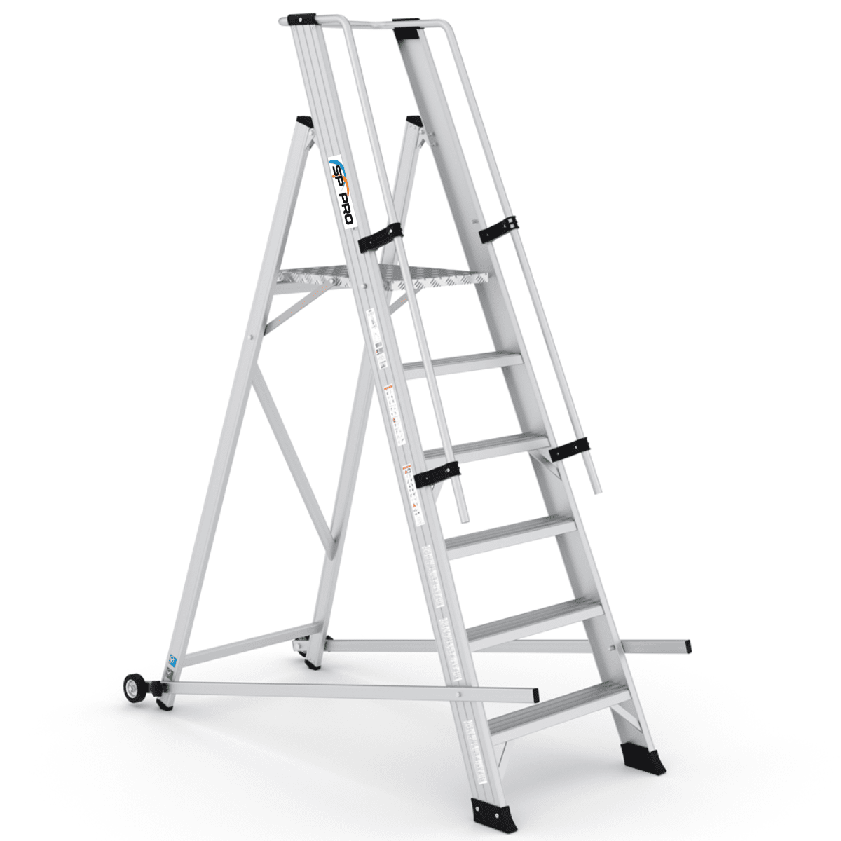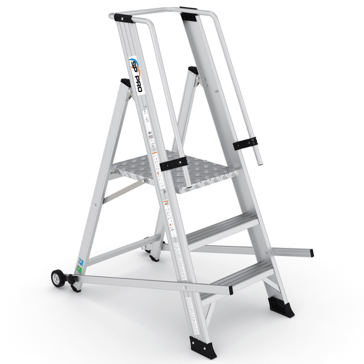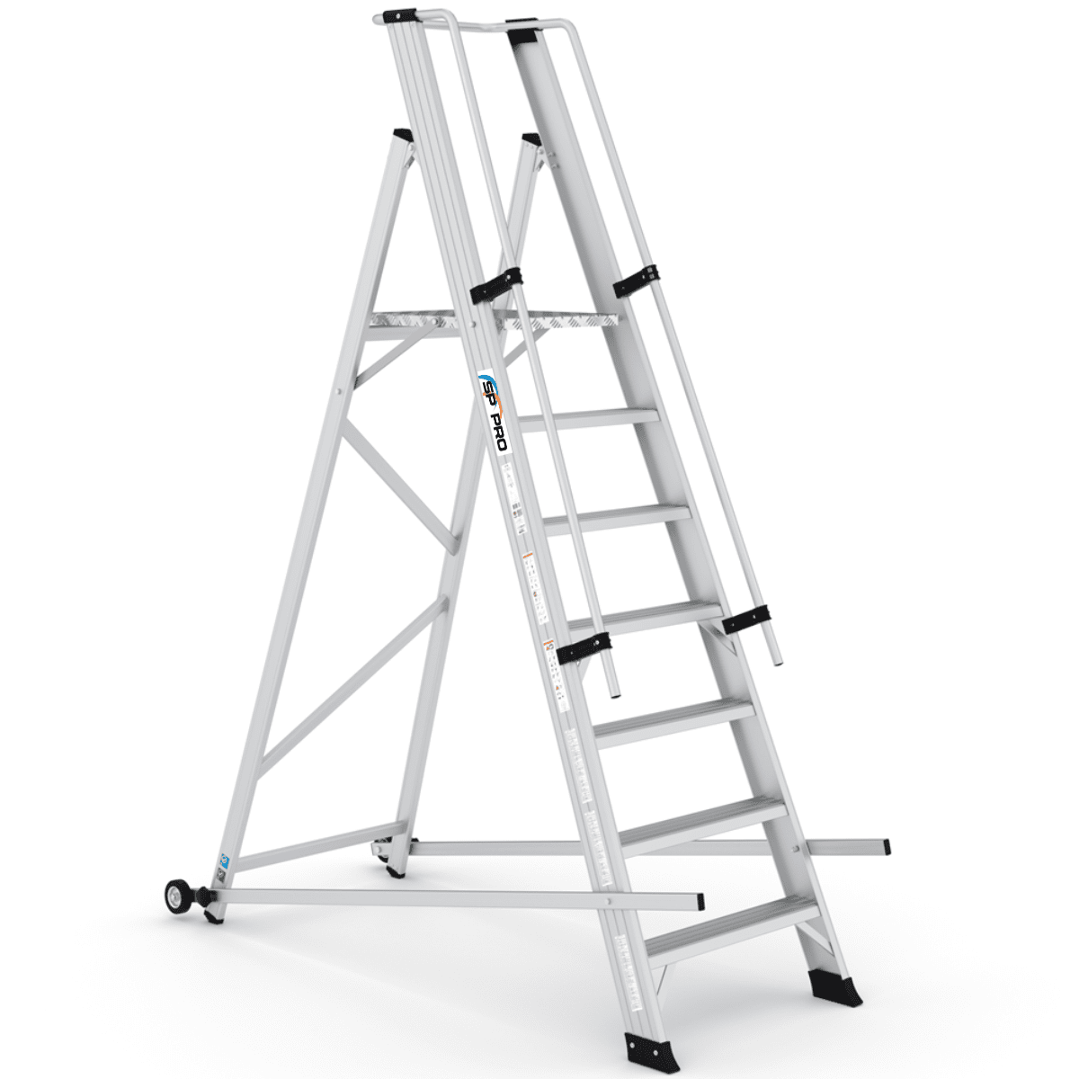 Denne trappestige er udstyret med hjul og fås i seks forskellige størrelser. Det er en utroligt praktisk og sikker løsning, når du skal arbejde i højden. Hver platform er fremstillet helt i aluminium med en skridsikker overflade på 42x53 cm, som giver ekstra stabilitet og et sikkert fodfæste. Med certificering efter EN 131 kan du være tryg ved, at dette valg lever op til de højeste sikkerhedsstandarder.