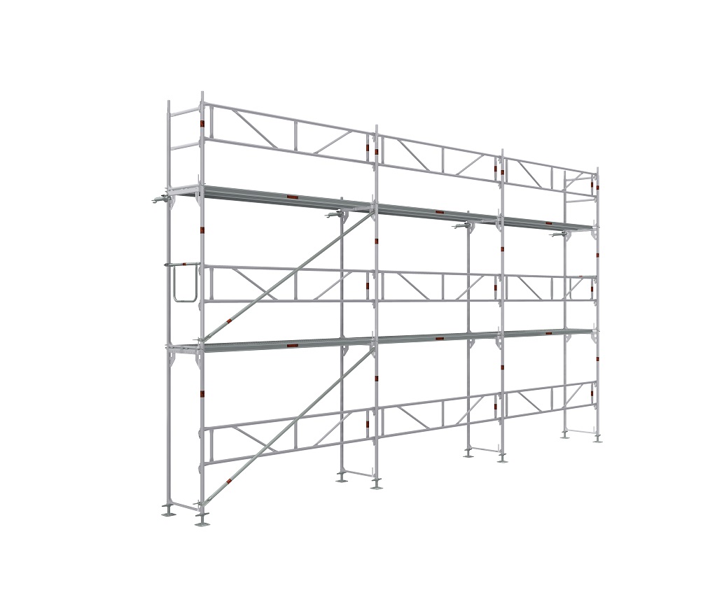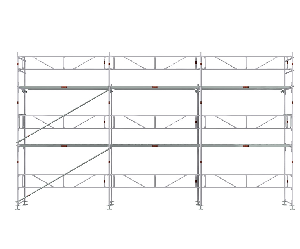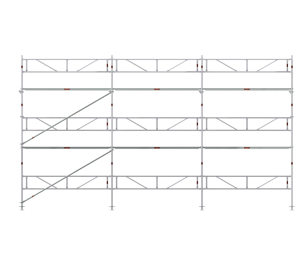 Facadestilladspakke i topklasse, komplet med dobbelte rækværk for hurtig og sikker montering.