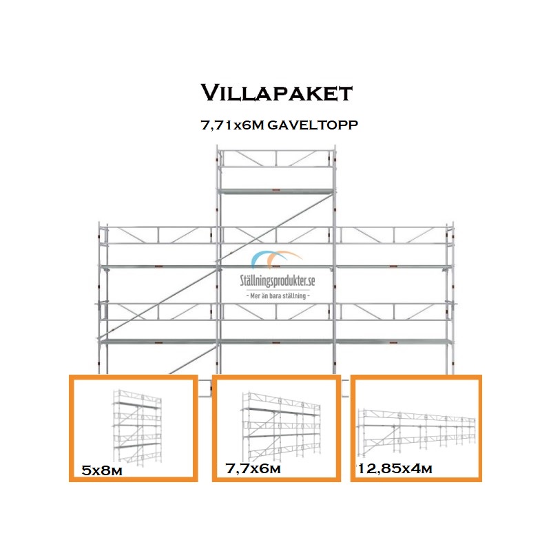 Villapakken er perfekt til renoveringer, tagarbejde og andre projekter, hvor der kræves fleksibilitet og stabilitet. Med flere opbygningskonfigurationer kan stilladset nemt tilpasses arbejdspladsens specifikke behov. For ekstra bekvemmelighed og nem transport kan pakken kombineres med en stilladstrailer.