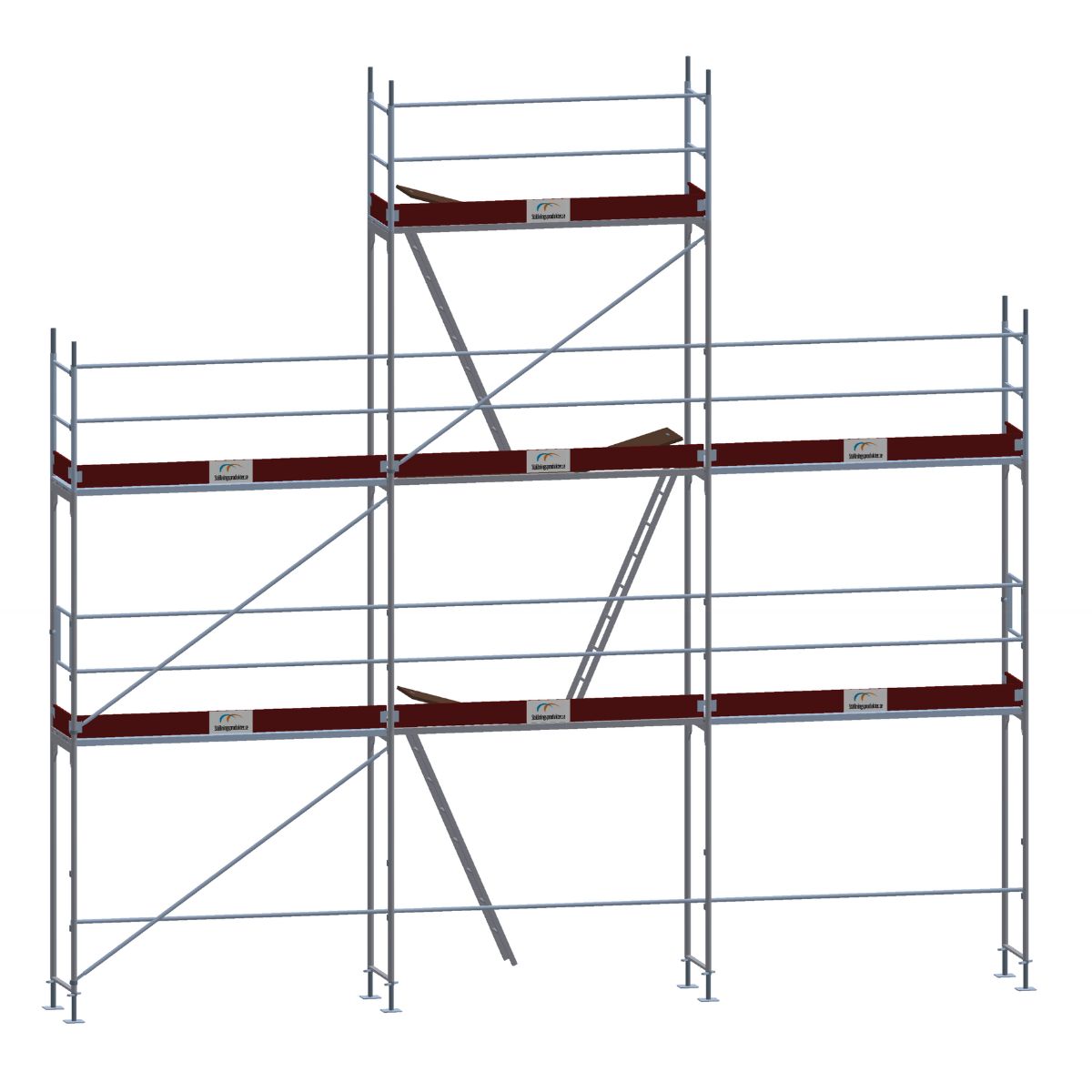 Villapakke Facadestillads STÅL 60 m² i stål er en komplet og ekstra robust løsning, udviklet til både private og professionelle brugere med fokus på holdbarhed og stabilitet. Med sin kraftige stålkonstruktion, gennemtænkte opbygning og flere opstillingsmuligheder er denne facadestilladspakke ideel til renoveringsopgaver og mindre til mellemstore byggeprojekter. Stilladset er fremstillet i Tyskland og leverer høj kvalitet, lang levetid og sikkerhed ved arbejde i højden.