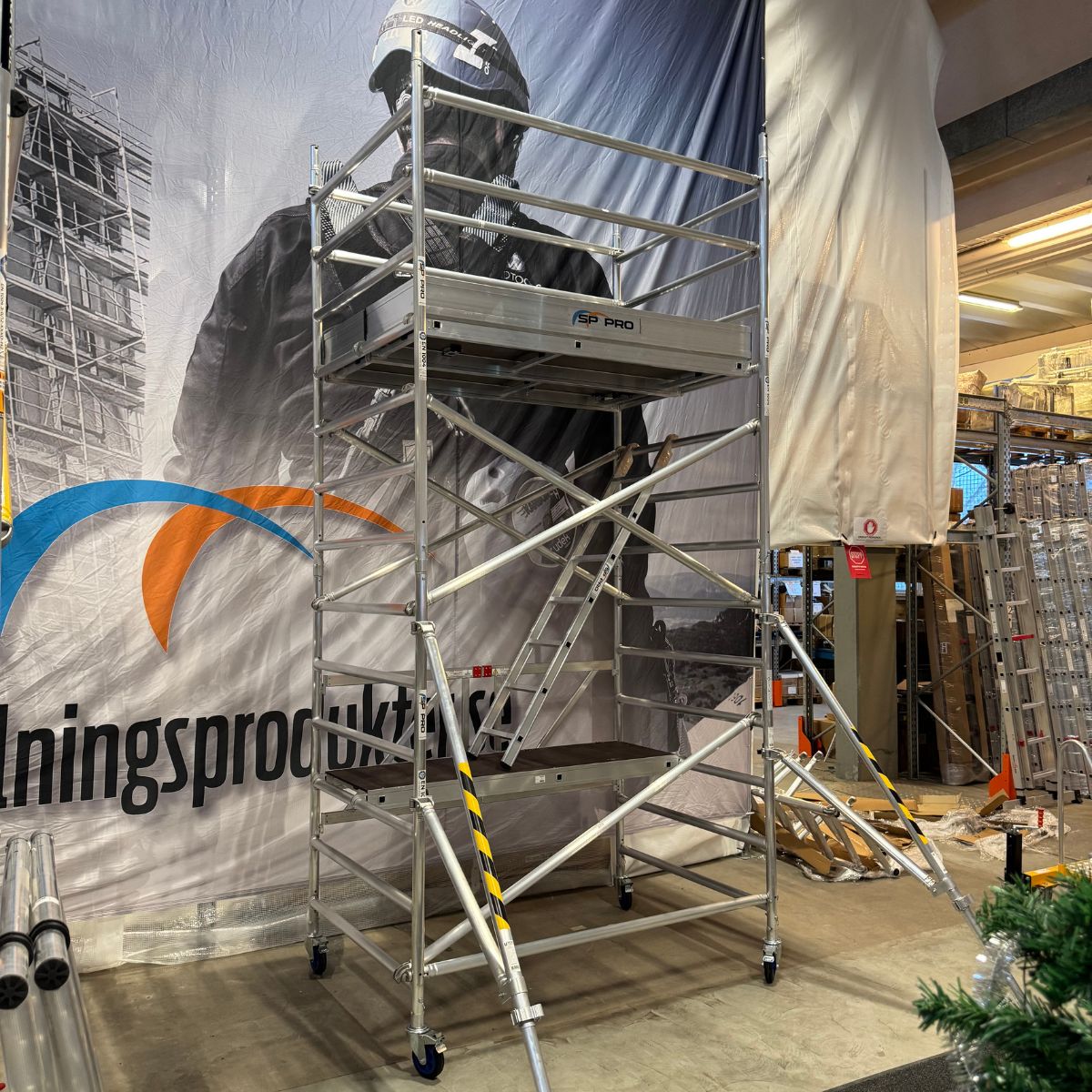 Säkerhetspaket innebär att ställningen har alla delar som krävs för att den ska vara godkänd för bruk på arbetsplats enligt de senaste kraven i AFS2023:9. Omfattar bland annat sparklist, innovativa säkerhetsräcken, stödben mm.