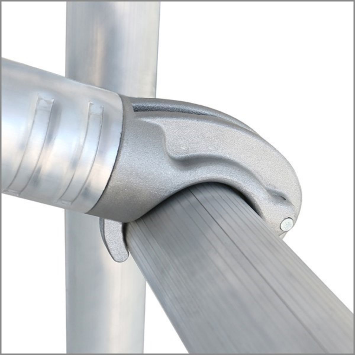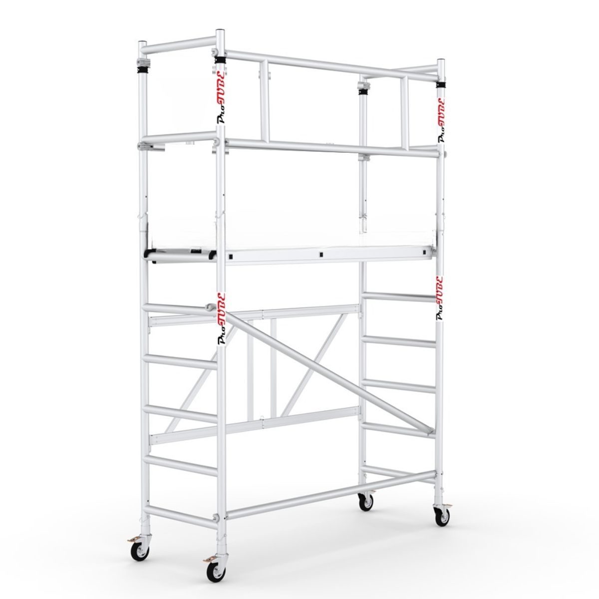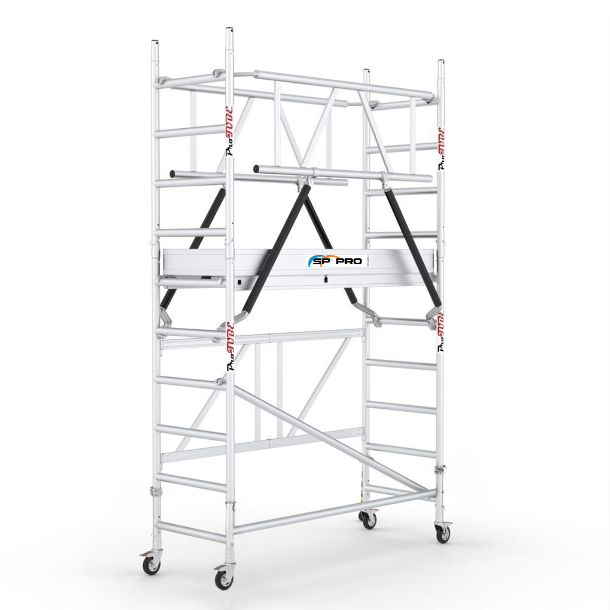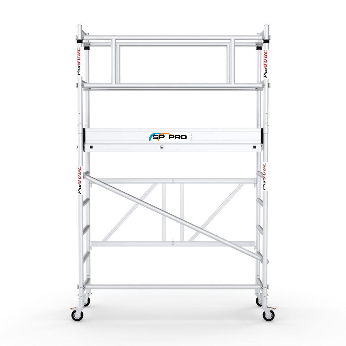 Den sammenklappelige grundsektion betyder, at stilladset kan sættes op på få sekunder. Aluminiumsrammen gør det let at transportere, og de låselige hjul holder stilladset stabilt under brug. Kombinationen af lav vægt og smal konstruktion gør det ideelt i korridorer, små rum og andre trange områder, hvor større stilladser ikke kan anvendes.