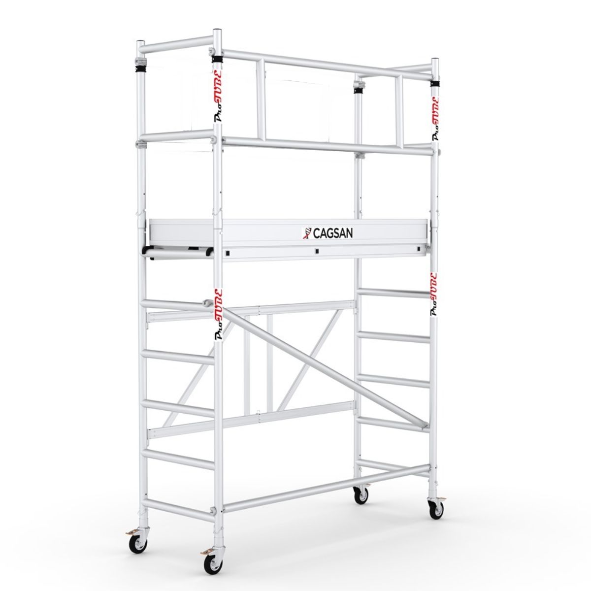 Ved professionel brug kræver Arbejdstilsynet, at stilladset er udstyret med sikkerhedsrækværk, sparkeliste og støtteben i henhold til AFS 2023:9. Til privat brug er disse tilvalg ikke et krav, men de giver en tryggere og mere stabil løsning og anbefales derfor også i hjemmemiljøer.