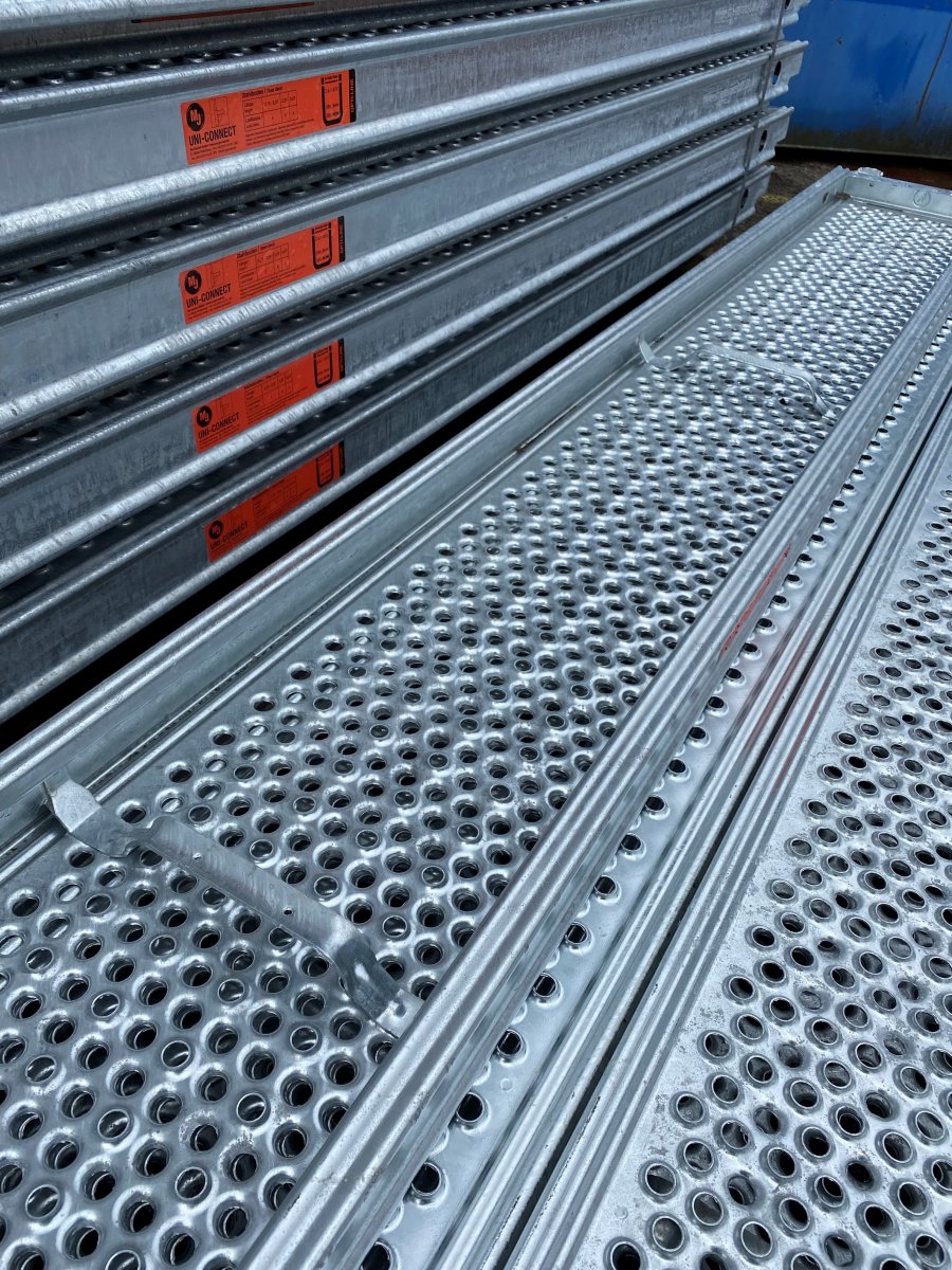 Stålplank OPTI-LINE er designet til hårde forhold på byggepladsen, hvor både sikkerhed og holdbarhed er vigtige. Den varmforzinkede overflade beskytter effektivt mod korrosion og gør planket velegnet til udendørs brug.