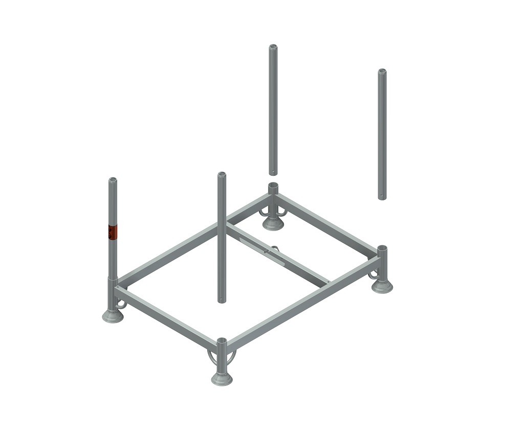 Materialburet er udstyret med løfteøjer til løft og transport, så du let kan håndtere det på byggepladsen. Den stabelbare konstruktion og de aftagelige rør gør den både praktisk og pladsbesparende, især under transport.